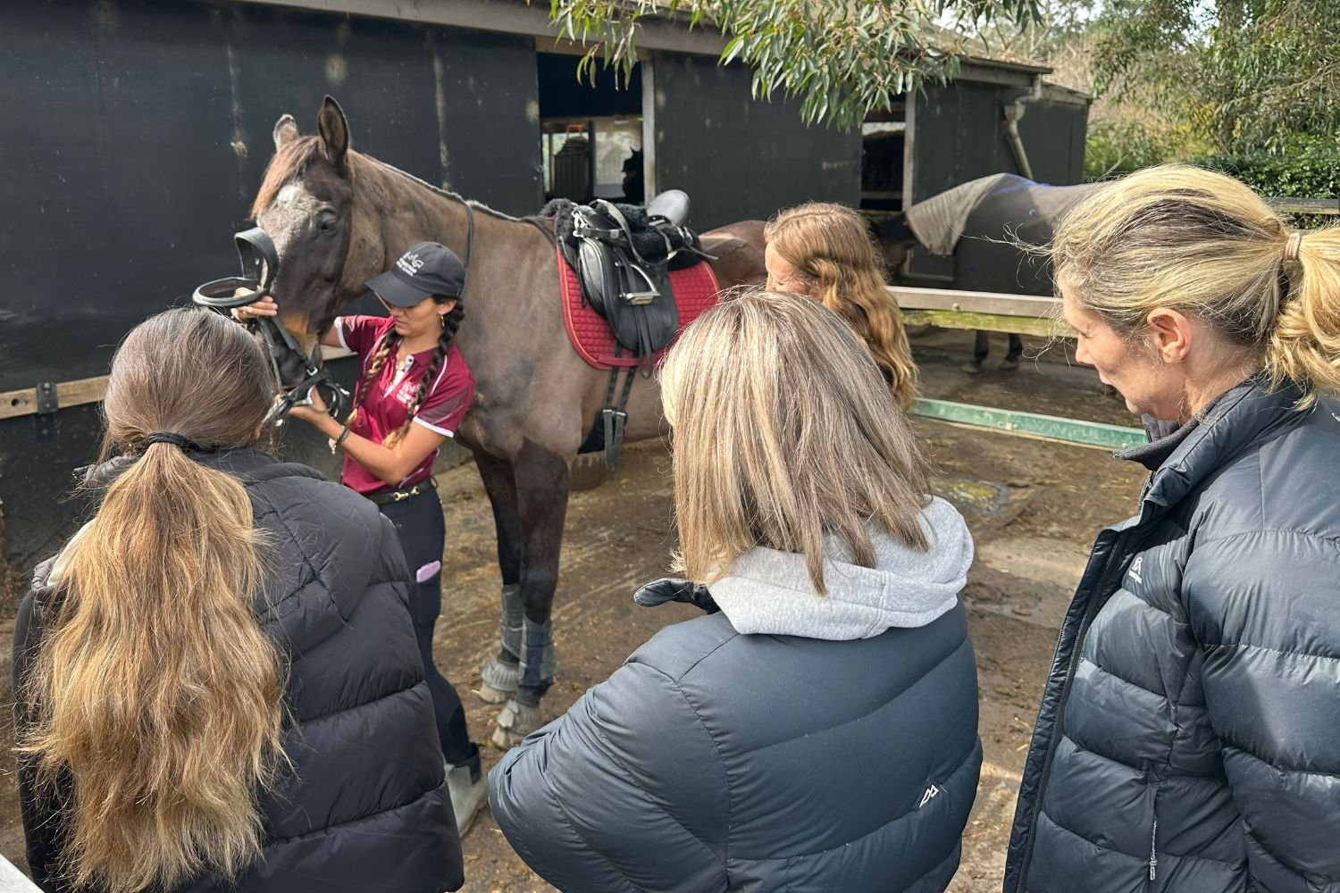 A group horsemanship session tailored to the group's collective experience, ensuring that each rider gains valuable foundational knowledge about horse care, grooming, handling, ground work, communication, and safety. (Approx 70 minutes)